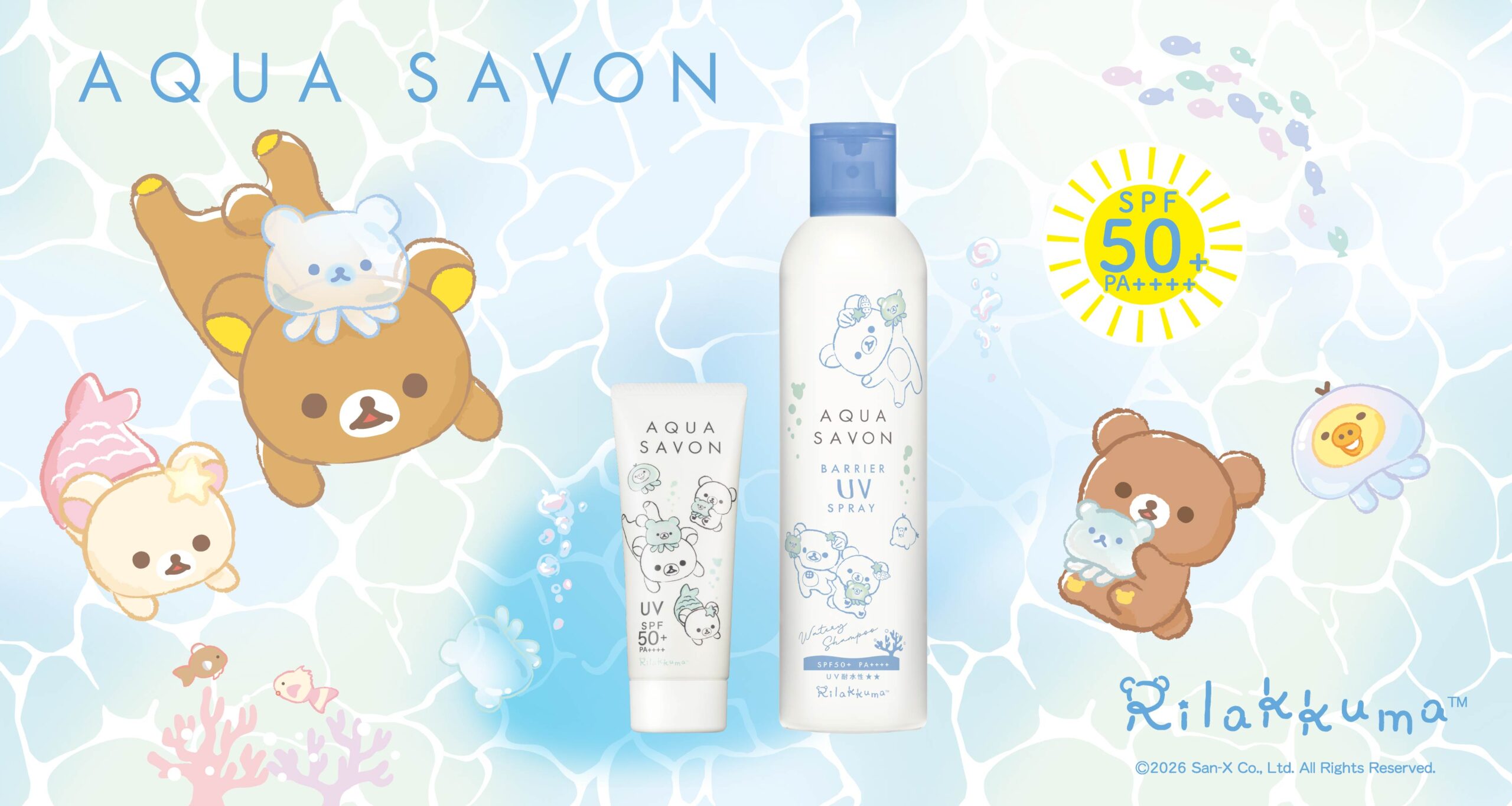 2026/2/5(木)から「アクア シャボン バリアUVシリーズ」から”うみリラきぶん”の『リラックマ』デザイン2種が、アクア シャボン公式オンラインストアにて先行発売開始!